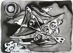 Quelques photos de ma dernière série de dessins à l’encre de Chine sur papier aquarelle 30 x 40 cm. Un univers fantastique, un peu surréaliste et exotique y est dévoilé, les thématiques de flux migratoire, de réchauffement climatique sont également évoquées avec humour. Ce travail de dessin est en relation avec mes sculptures de pirogue (Arche de Noé) et des « Boat-people »